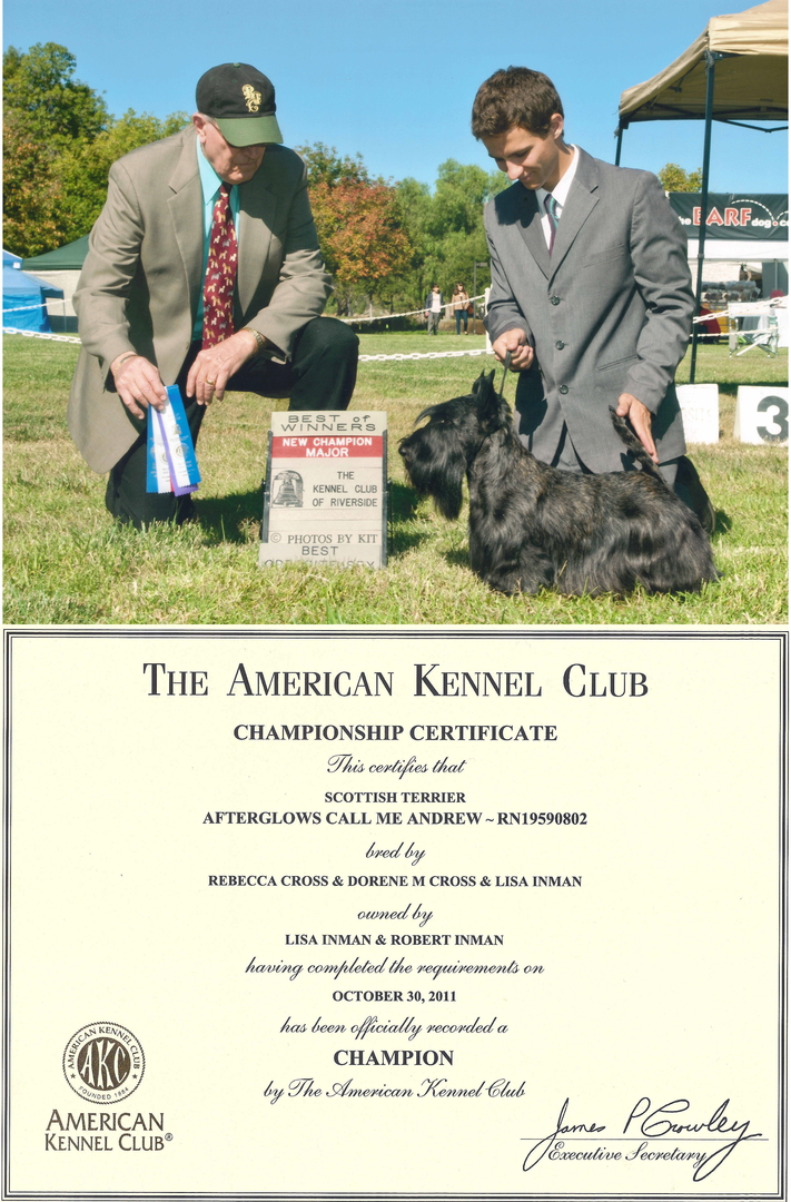 Click here to view Andrew's AKC Title Progression Report detailing each of his show wins
