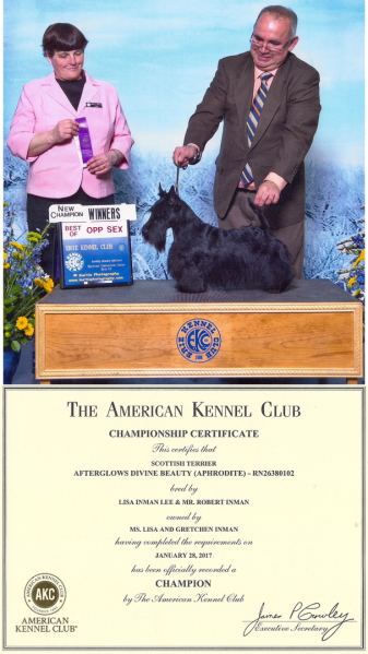 Click here to view Aphrodite's AKC Title Progression Report detailing each of her show wins