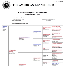Click here to view Cassia's AKC Title Progression Report detailing each of her show wins