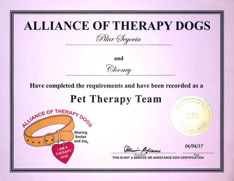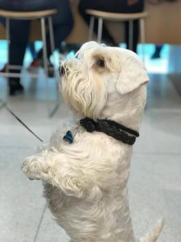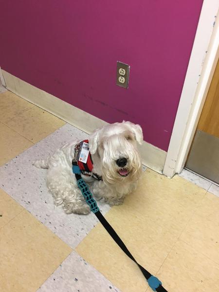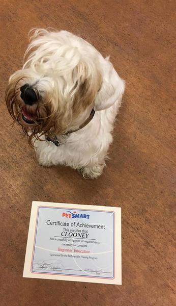Clooney has a unique title of Therapy Dog* (TD) and while it is not an official AKC title, he is a winner in our book. Sealyhams are very smart, love meeting new people and draw people in. They make excellent therapy dogs.