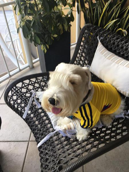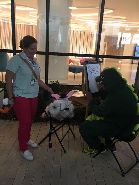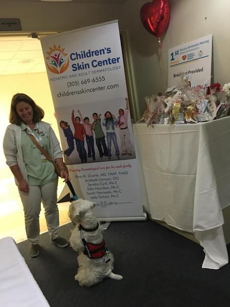 He was also part of a Spanish-language video news segment about therapy dogs visiting the Nicklaus Children's Hospital in Miami.