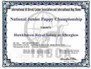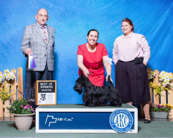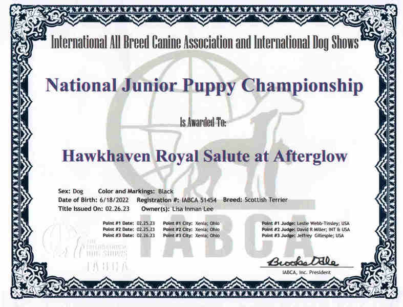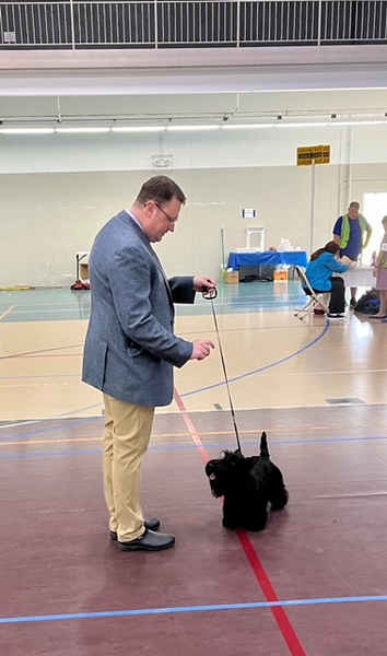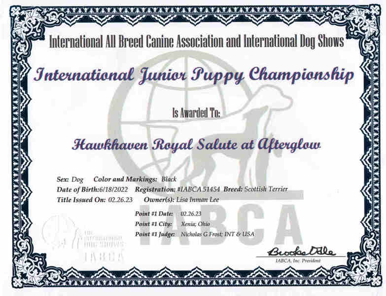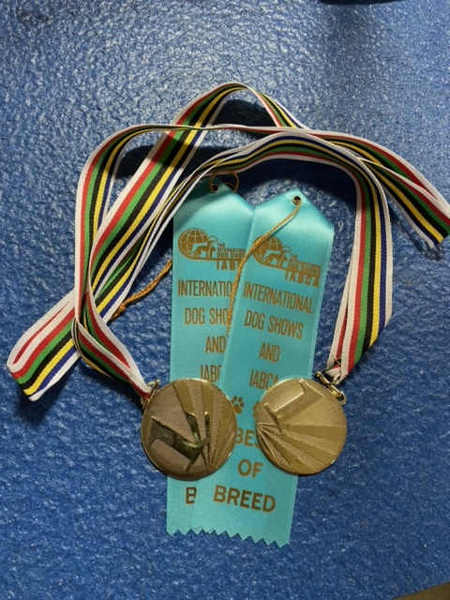 He has a great future in in the show ring winning Puppy Reserve Best in Show at IABCA International Dog show 2023 in Ohio and his first AKC Major before turning 10 months old. No surprise as his great grandmother is the world's first Dog Show Triple Crown winner "Sadie" (Roundtown Mercedes of Maryscot).