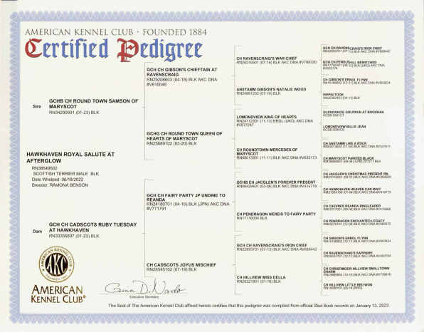Sire: GCHB CH Round Town Samson Of Maryscot