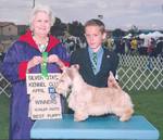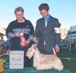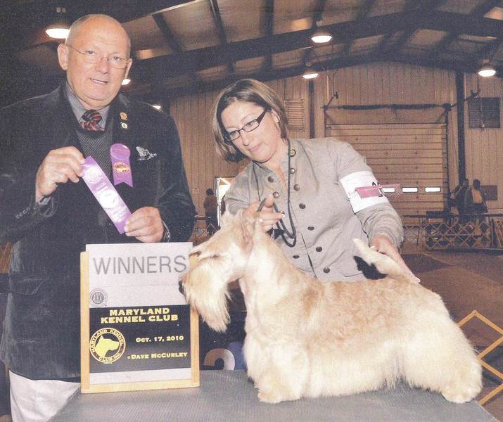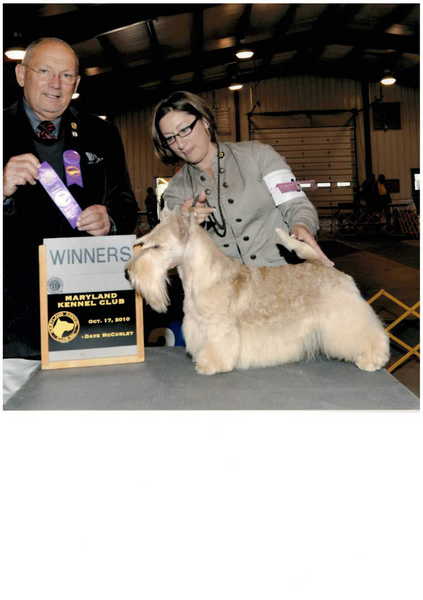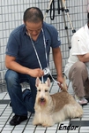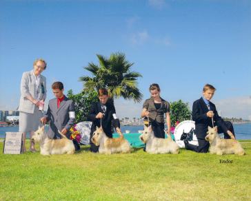 Endor was a handful when he first started going to handling classes with Michael. He would roll like an alligator. One of seven littermates, all Wheaten, including three other champions. Like most Wheaten scotties, his favorite game growing up was "Catch me if you can".