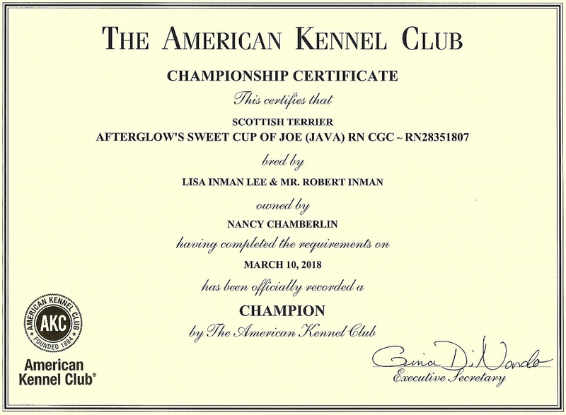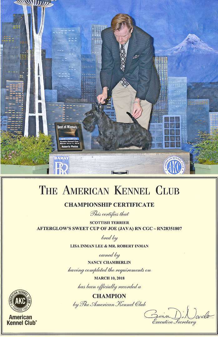 Java's successes speak well to the versatility of the Scottish Terrier earning both Prefix and Suffix titles on each side of his name.