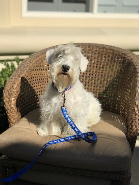 "I hope you enjoy the photos on my web page. I have a great life in La Quinta, California. It is a long way from my birthplace in Ohio, but I love the sunshine and that I can play outside everyday. My training has been extensive and I am now a therapy dog for my parent. He has a hearing loss and so now I am his ears. We take walks and play and take the golf cart over to our community puppy parks. It is the social scene for pets and parents. My parents have made numerous friends and take part in all the 'parent' activities. Since I am a Sealy, I have no reference to size, so one of my best buds is a sheepdog. We run and roll and use up a lot of energy."