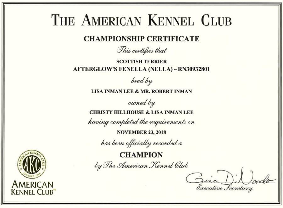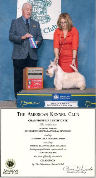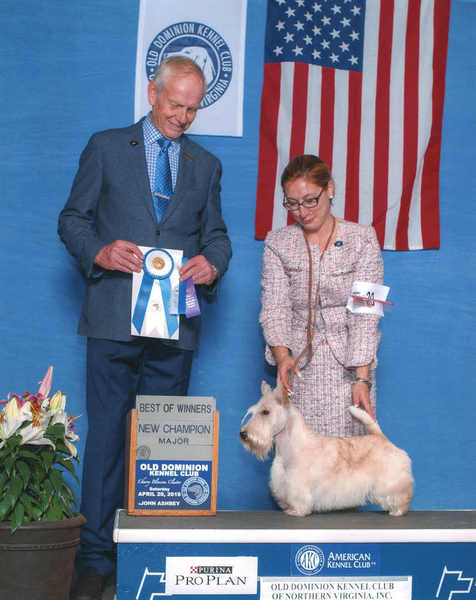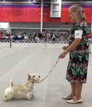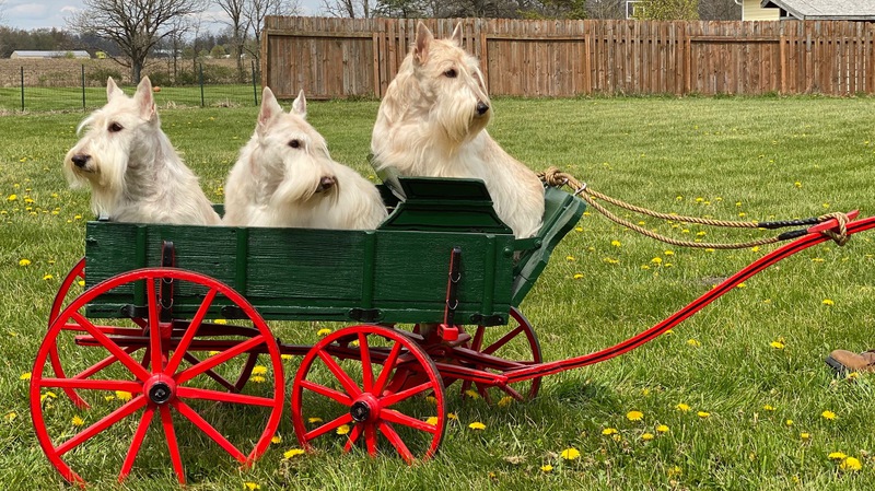 Nella stole our hearts from the get go. She loves the ring, has a natural show dog attitude with her head and tail always up and the judges adore her. She has beautiful movement and conformation and the kindest eyes and sweetest face. She is a Midwestern girl through and through having been born and raised in Ohio. She carries with her all of the Wheaten behaviors that make them so endearing to their owners. Yes, they are a bit different from the black and brindle varieties. She does anything that is asked of her.