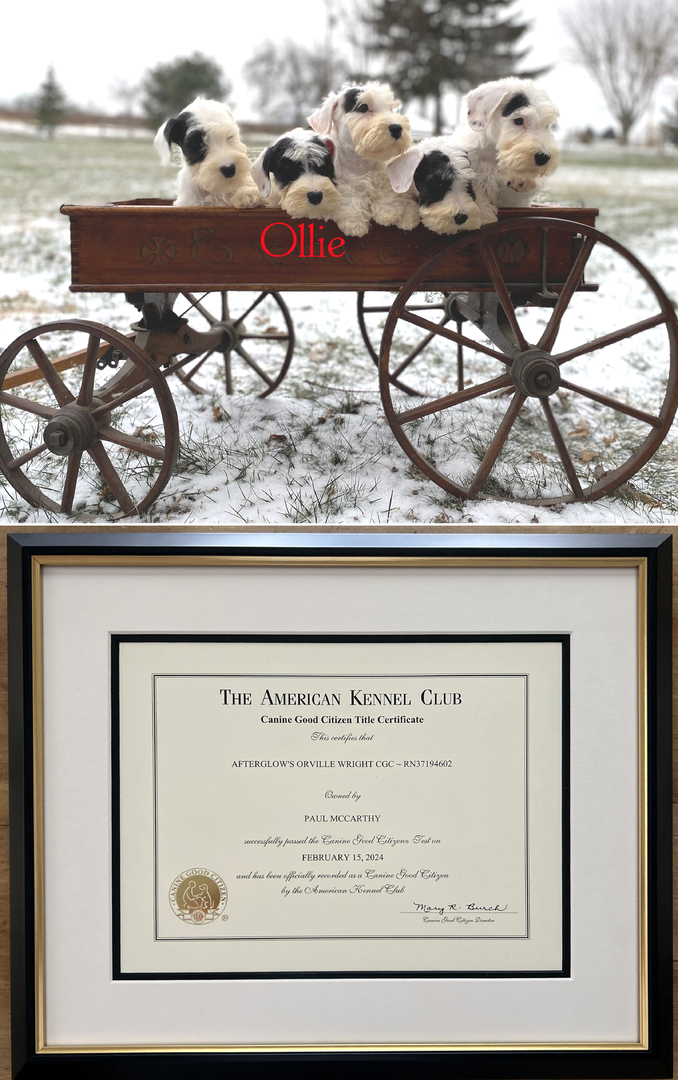 He encompasses all that a Sealyham Terrier was intended to be, but much more. While living in Middleton, Mass., he was a conversation starter anytime he was out in public as few people had ever met one. His owner at the time, Paul, is a purple heart recipient who served as a US Army infantry airborne officer in Korea, Vietnam and Cambodia. Paul arranged for Ollie's training to become an AKC Canine Good Citizen (CGC).