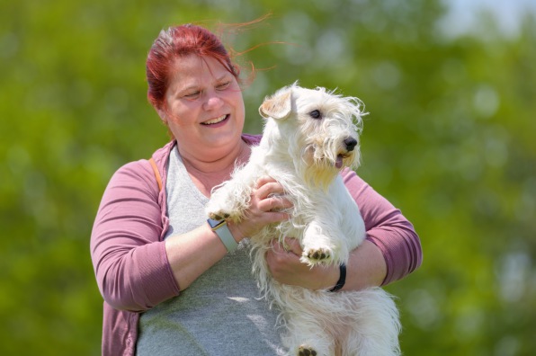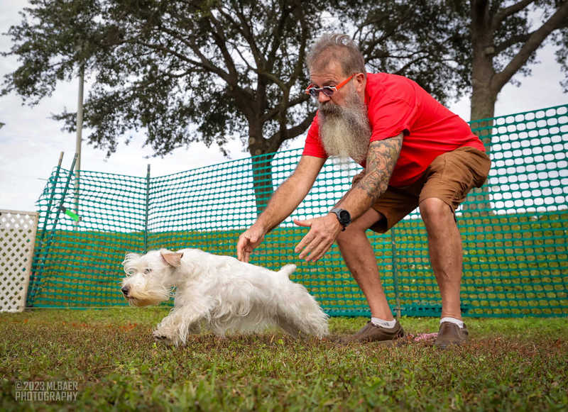 Being a true Sealyham Terrier or should we say Sillyham Terrier, she has a focus on fun beyond measure. She keeps us laughing with her determination to drink ice-cold water from our Yeti cups, chewing up sticks, climbing up and under things like a little billy goat, and swimming in her water bowl. One day, she is surely going to catch that squirrel before it makes it safely up the tree.
