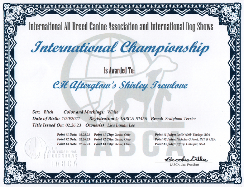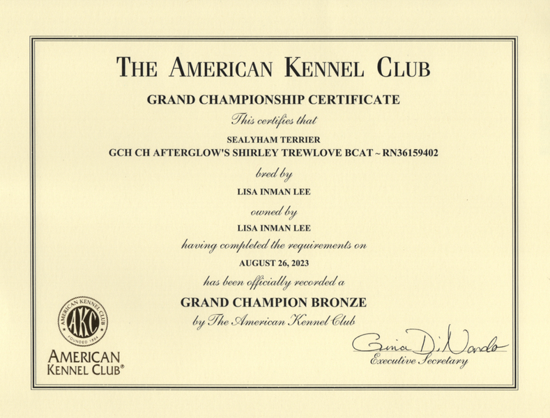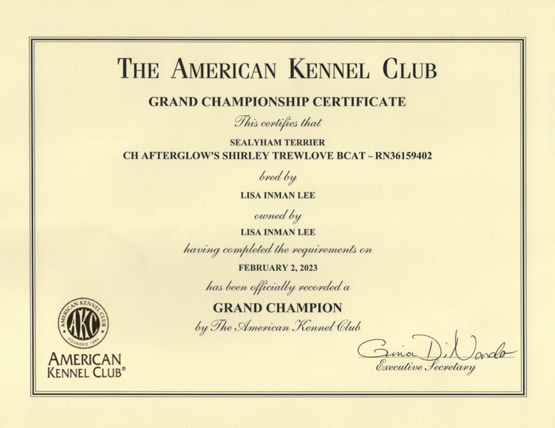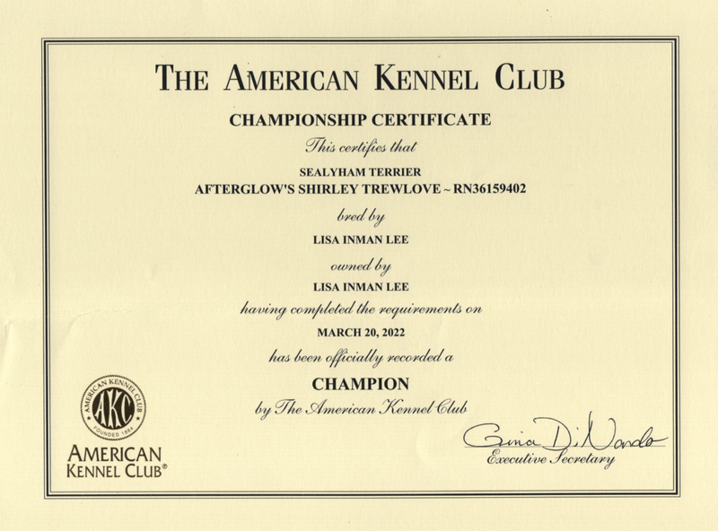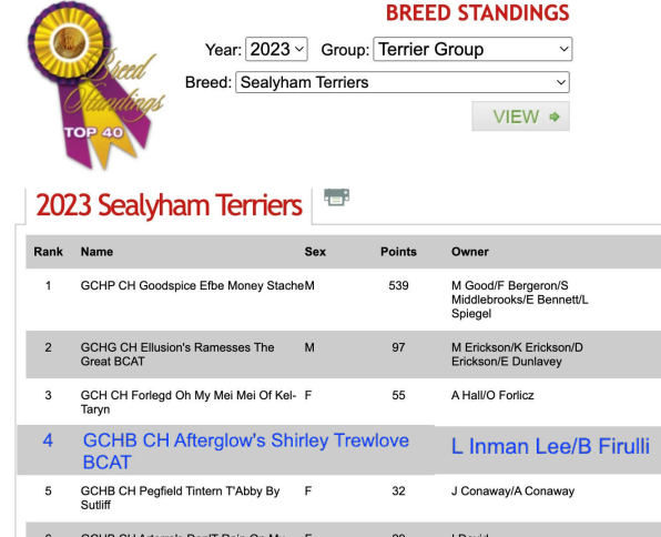 Shirley finished 2023 as the #4 Sealyham in the USA