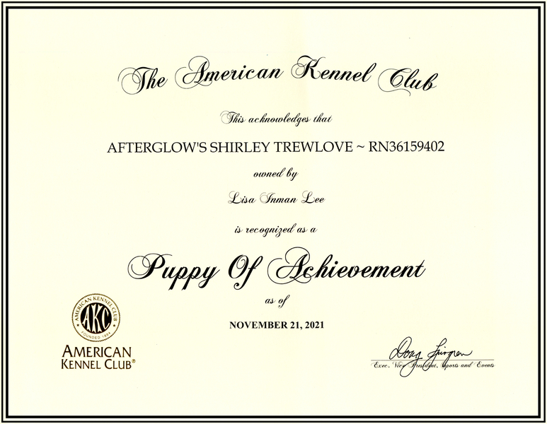 Sire: GCHB CH Afterglow's Sir Bedivere CGC