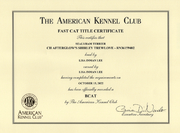 Shirley is up for anything at any time. She loves to be held and her belly rubbed during her quiet times but is always ready to mix it up with the girls and boys at playtime. Her beautiful coat hides an athletic build that has served her well in both the show ring and performance activities such as running events like FastCAT.