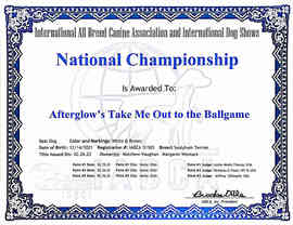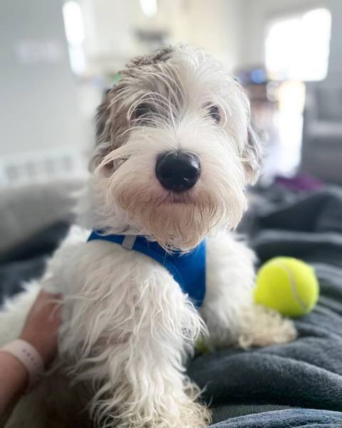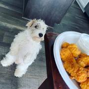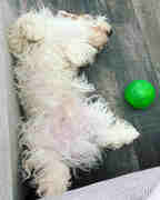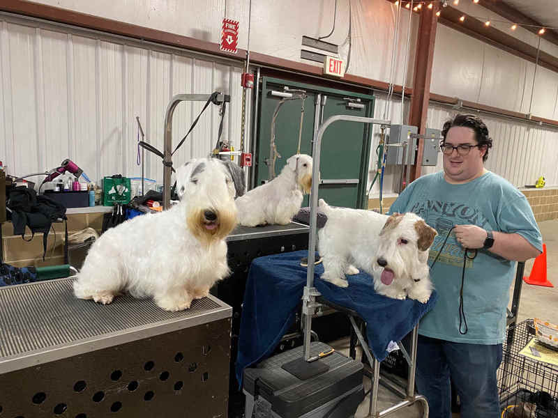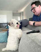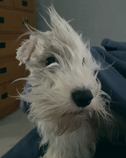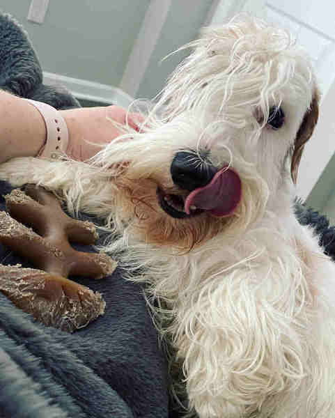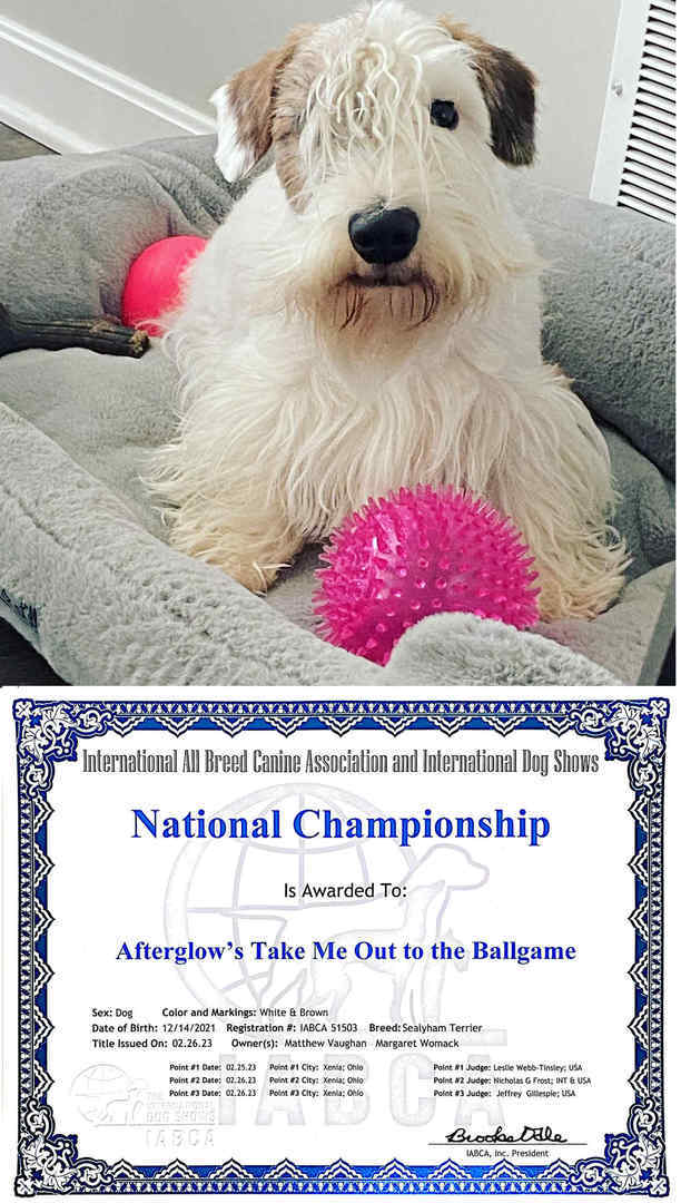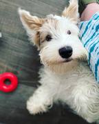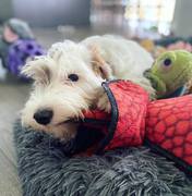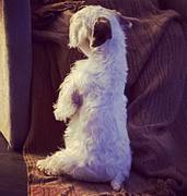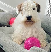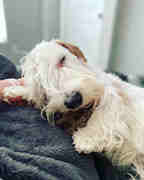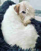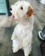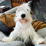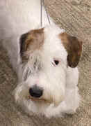 Truffle is a clownish delight! We often tell propsective Sealyham owners that they are clowns and will make you laugh every day. This boy emobodies this and more. Always ready to play with his humans or his four-legged buddies when he visits. He also shows a talent for rearranging the laundry basket "just so" as he sees fit.